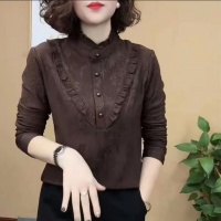 2025秋冬季新款木耳邊長袖衛衣 時尚磨毛一體絨打底衫 百搭顯氣質減齡遮肉 面料柔軟舒適 暗色提花設計 秋冬衣櫥必備 不論單穿外搭都好看