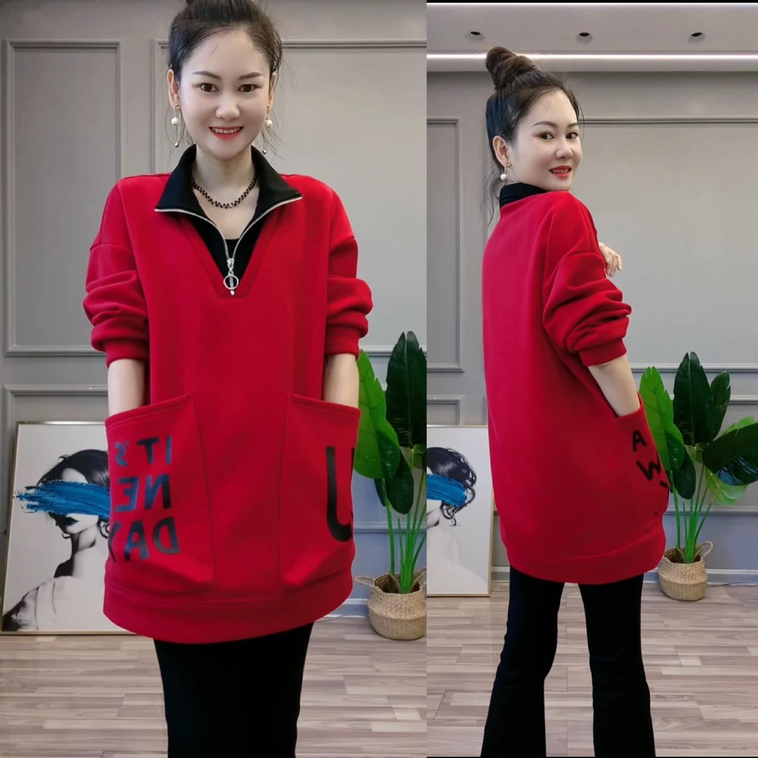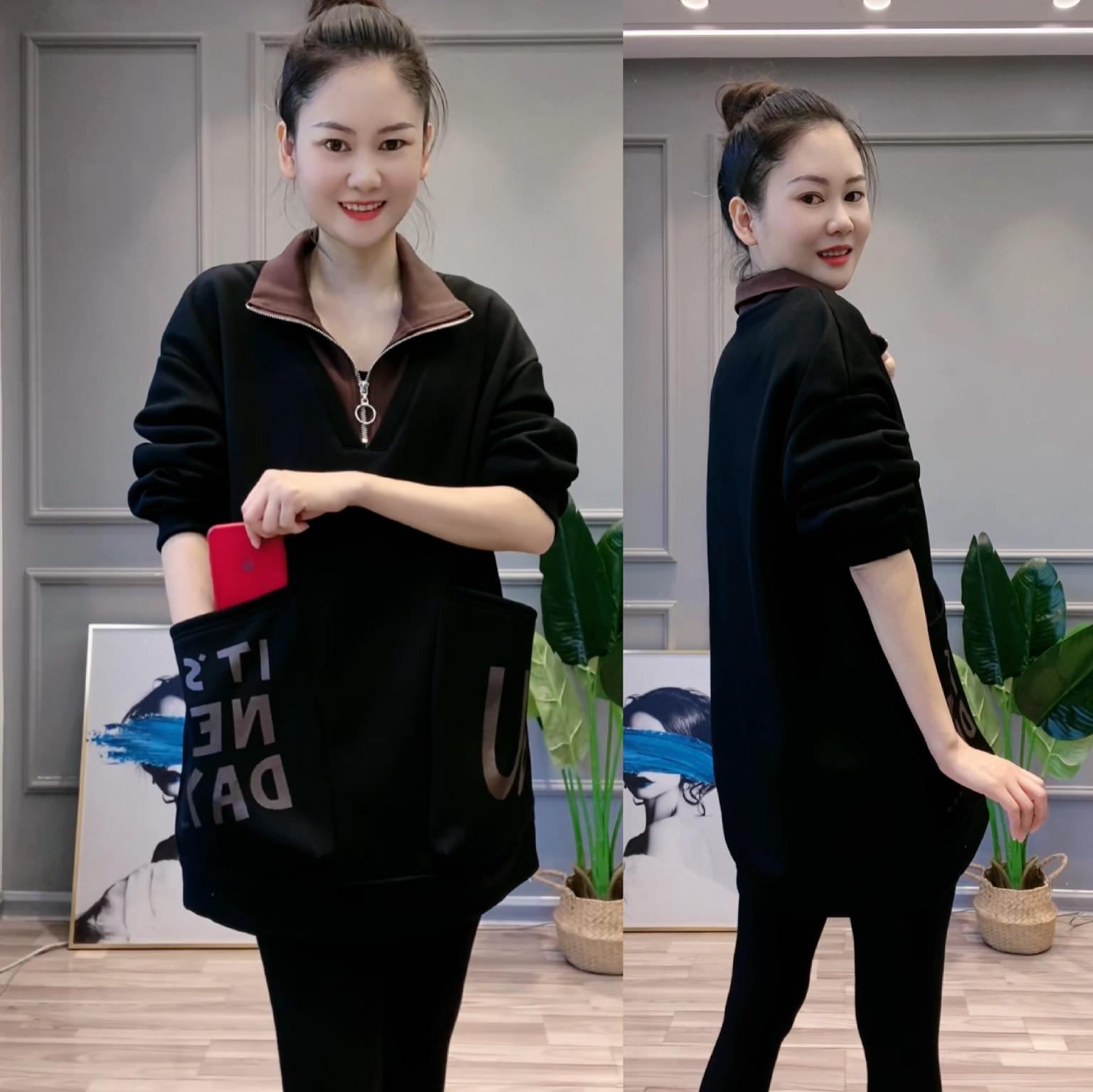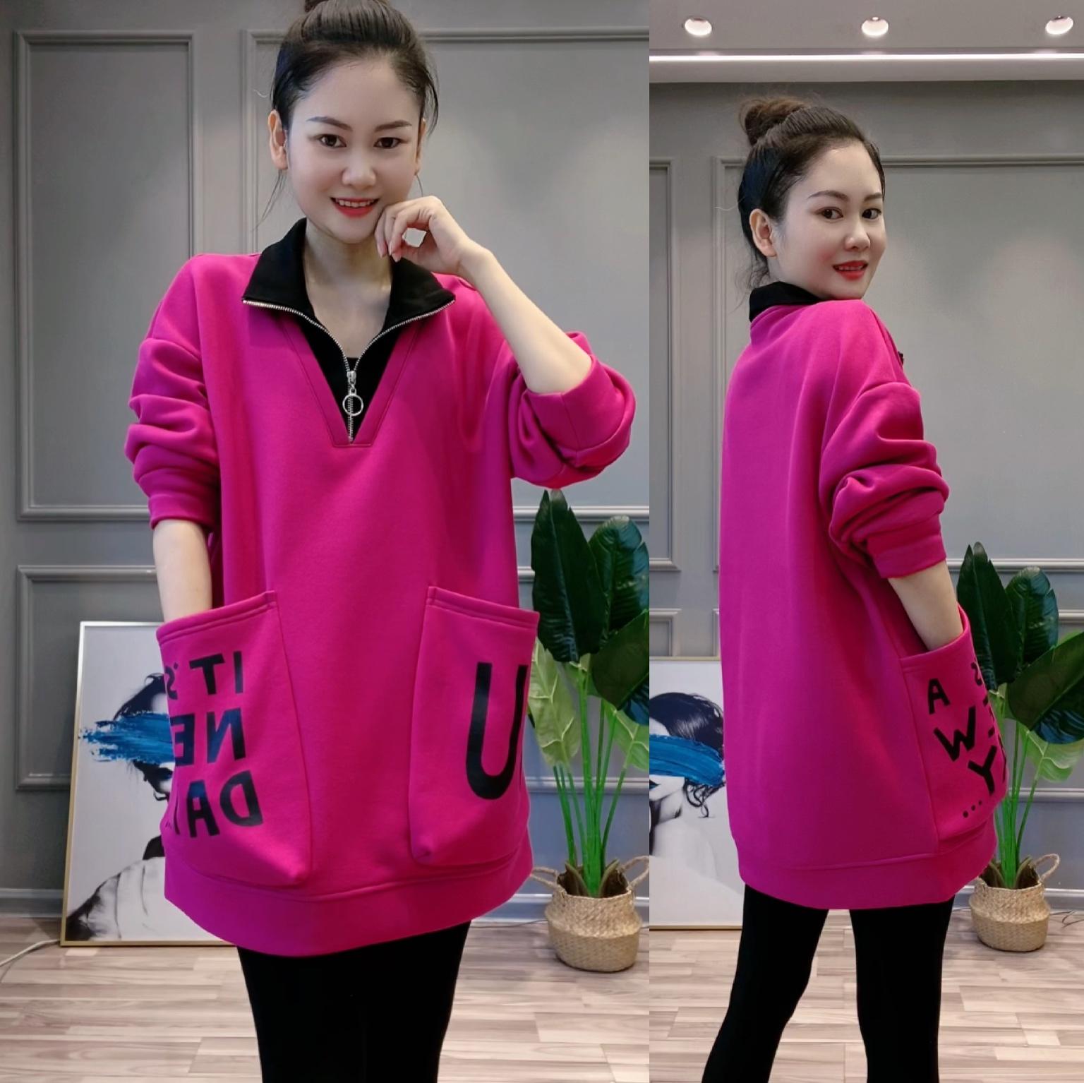 2025新款秋款立領雙口袋大款顯瘦衛衣 面料柔軟舒適 百搭顯氣質